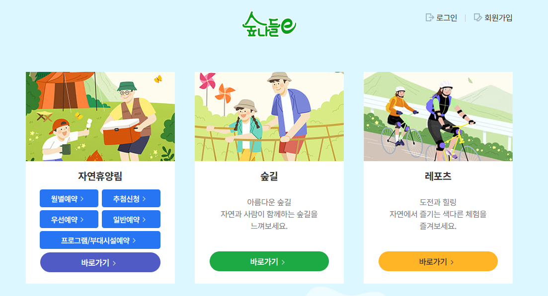 포털 사이트에 '숲나들e'를 검색하거나, 아래 주소로 직접 접속하세요.